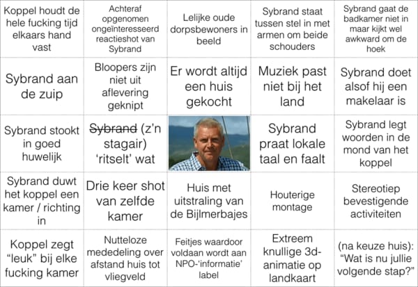 Droomhuis Gezocht is godzijdank weer begonnen, en dit seizoen is echt weer een klein hoogtepuntje op de duffe maandagavond (Nederland 1, 21.20). Om dat te vieren twee gifjes van de beste aflevering tot nu toe: treinengekkies op the Isle of Man. En hierboven in de reprise: Droomhuis Gezocht-bingo!